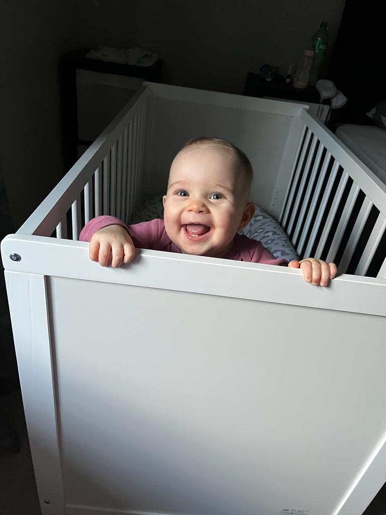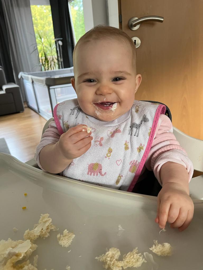 Morgens bin ich immer gleich wach und lache. Mein Brötchen war wieder lecker. Dann waren wir noch bei einer Arbeitskollegin von Mama. Die hat ein Baby, das ist noch kleiner als ich. Wenn Marlon größer wird können wir auch zusammen spielen.