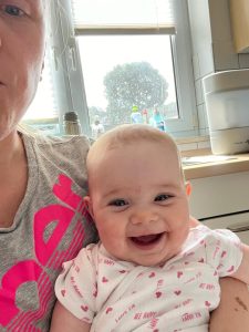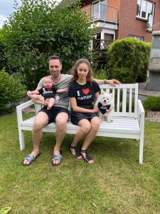 05.07.2022 Aryana - Von Anfang an Beim ersten Foto habe ich es gerade wieder geschafft auf Mama’s Arm zu kommen. Musste nur ein wenig heulen. Nachmittags haben wir dann eine Foto-Session gemacht. Wir alle sagen „I love Daddy“. Wir drei: Loki, Sibel und ich.