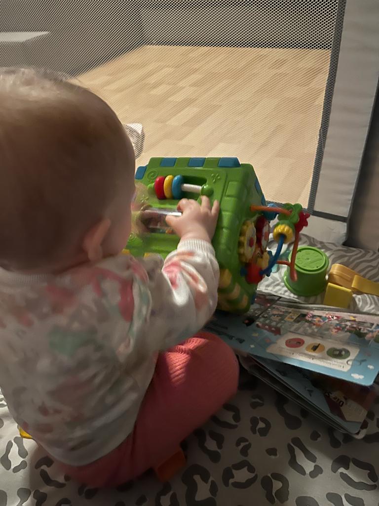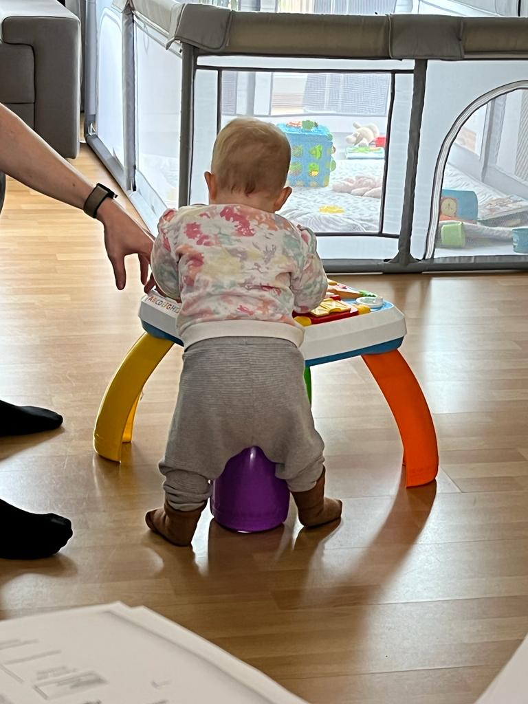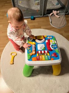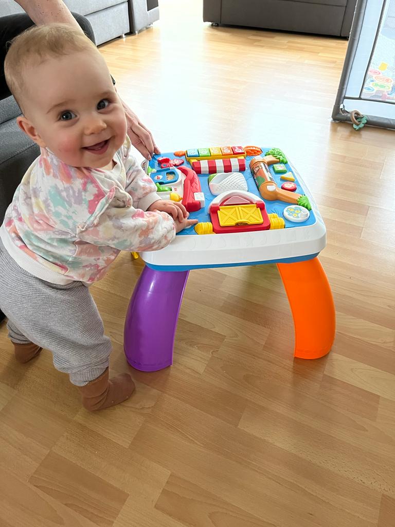 Ich hab wieder ein neues Spielzeug bekommen. Da kann ich dran stehen und damit spielen. Find ich toll. Und ich bin etwas erkältet. Hatte leichtes Fieber. Ist aber bei mir schnell vorbei gewesen.