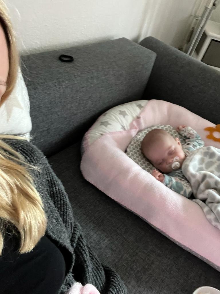 10.04.2022 Aryana - Von Anfang an Vormittagsschläfchen nach dem Spielen in meiner Burg. Papa ist immer noch positiv – Blöd ….