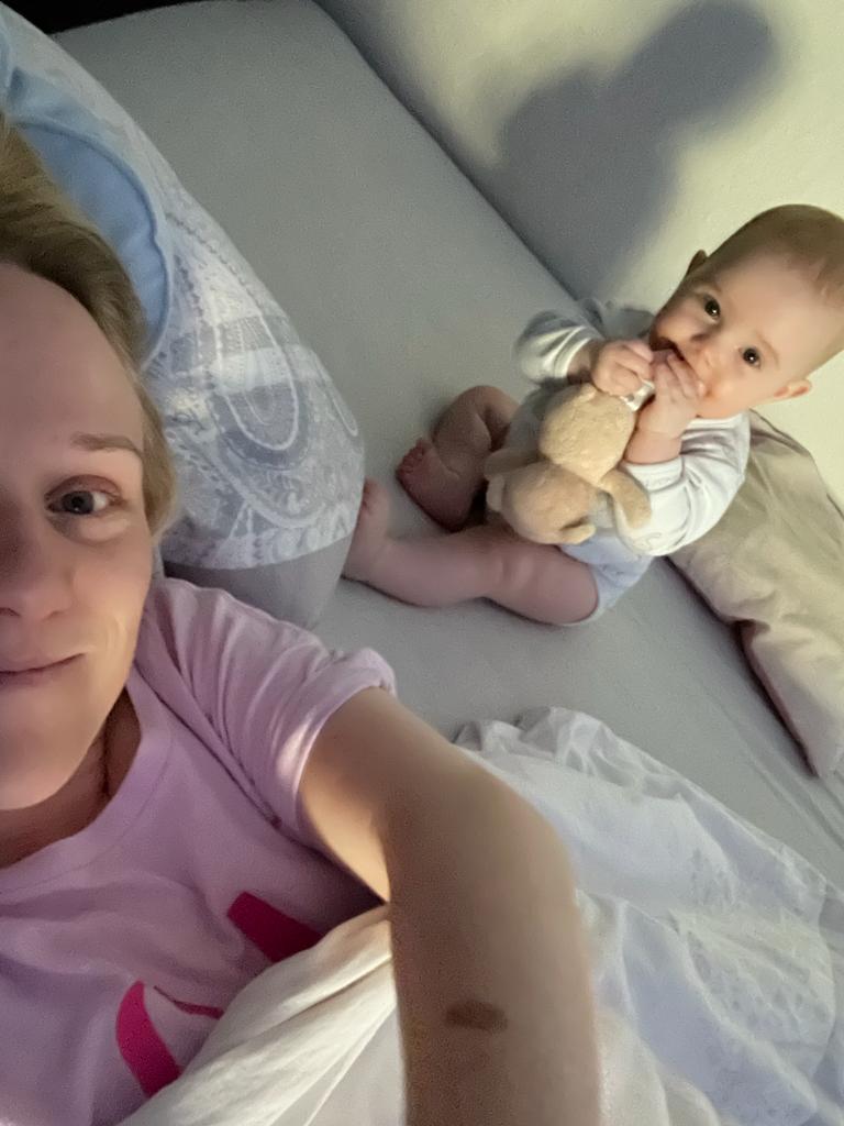 Morgens spielen wir immer im Bett. Dann bin ich gerade wach und gut gelaunt.