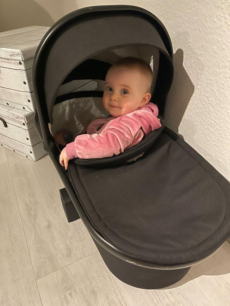 Guckt mal … in dem Teil vom Kinderwagen konnte ich mal liegen. Heute pass ich das nicht mehr rein. Aber man kann toll drauf klettern.