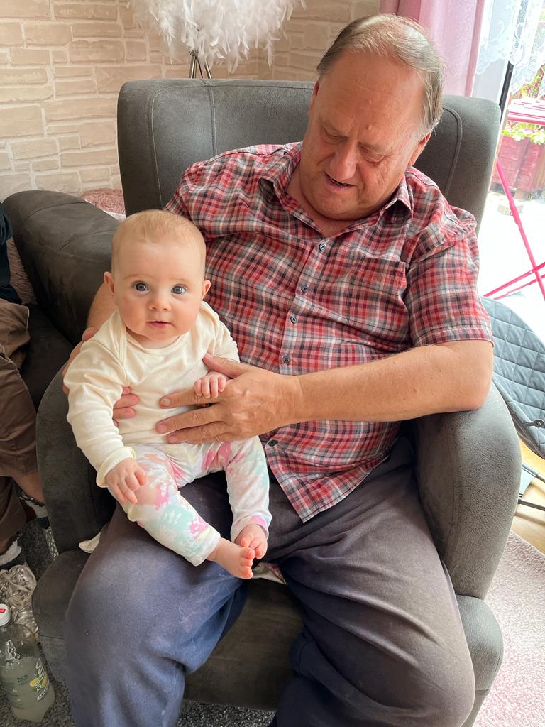 Opa war natürlich wieder da. Die ersten Tage wollte ich ja nicht bei ihm auf den Arm und habe dann immer gleich geweint. Inzwischen haben wir uns angefreundet und ich bin sogar gerne bei ihm. Da war der ganz froh.