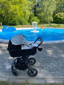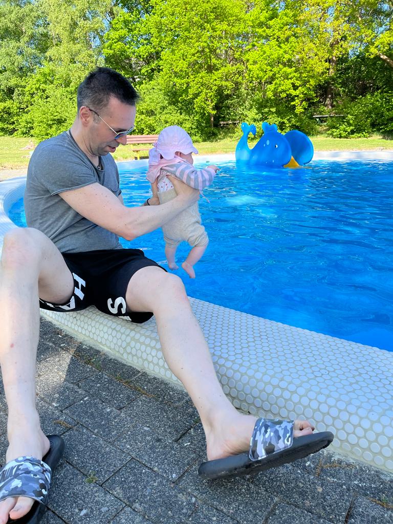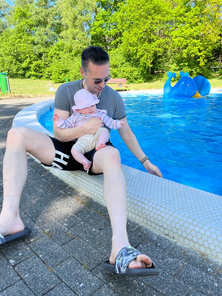 15.05.2022 Aryana - Von Anfang an Heute waren wir im Schwimmbad. Das liegt ja fast direkt hinter unserem Haus. Wenn ich größer bin, werde ich da bestimmt oft sein!