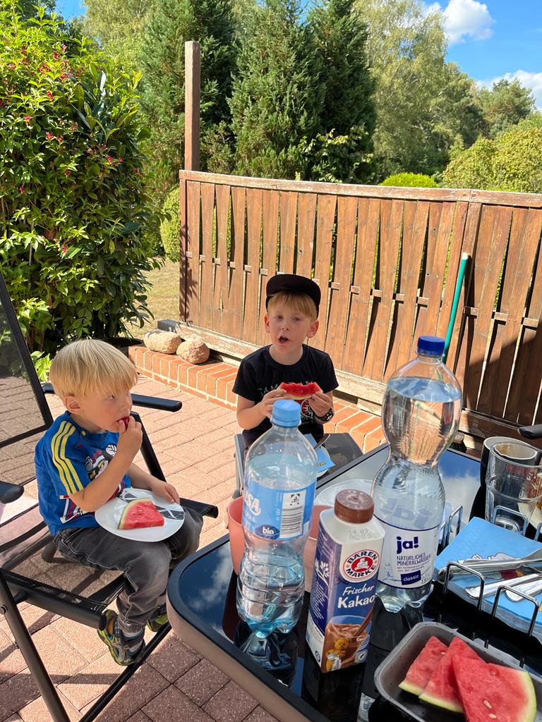 31.08.2022 Aryana - Von Anfang an Heute hatten wir Besuch von anderen Kindern. Und ich habe wieder tüchtig gegessen! Diesmal habe ich eine Erdbeere probiert. Da muss ich mich noch dran gewöhnen.