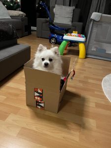 Ansonsten alles wie immer: Ich bekomme immer lecker Essen; dann kann ich sehr viel Spielen und meine Highlights sind es wenn wir mit Loki spazieren gehen, wenn wir ins Restaurant gehen oder zum Einkaufen fahren.