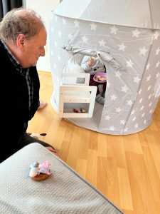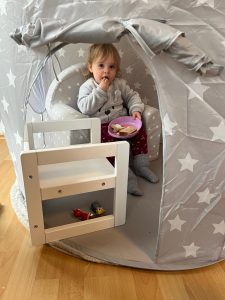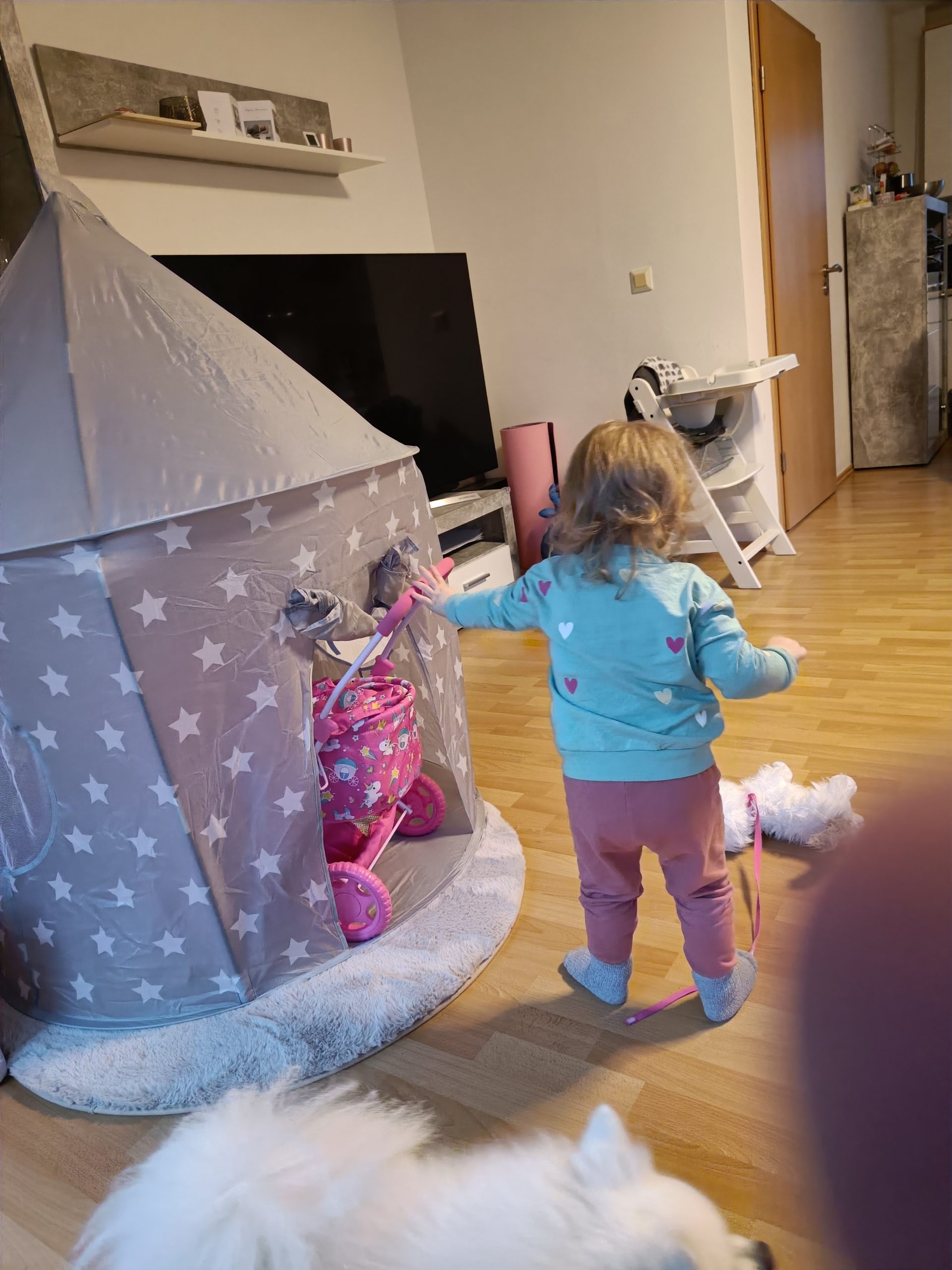 KW04 22 – 28 Januar 2024 Aryana - Von Anfang an Ich habe jetzt ein Zelt. Da kann ich mich verstecken, drin essen, lesen oder Musik hören (mit meiner Tonie Box). Opa und Oma waren auch wieder da. UND ich war das erste mal beim Friseur. Das mochte ich aber nicht so gern aber alle sagen das muss ja sein!