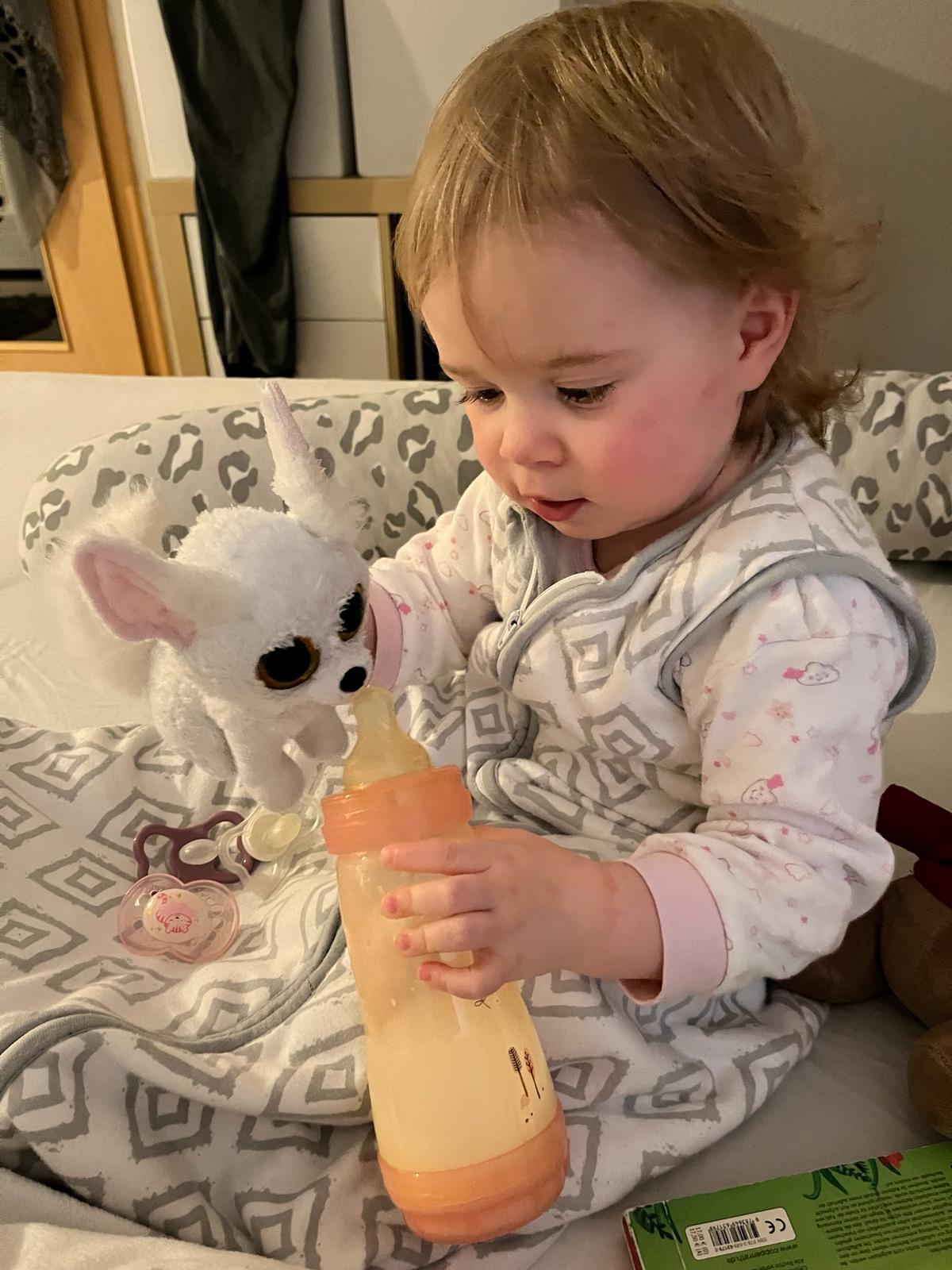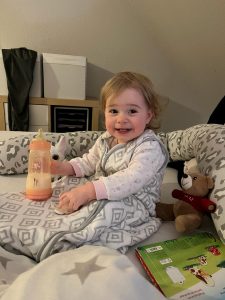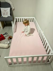 Ich habe ein neues Bett bekommen. Da kann ich jetzt alleine reinkrabbeln und alleine aufstehen. Ist da nicht toll?