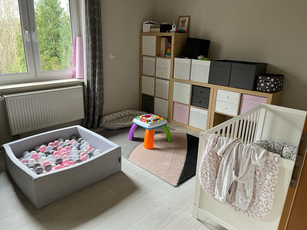 Ich habe auch ein eigenes Spiel- und Schlafzimmer bekommen. Alle meine Spielzeuge und mein Bett sind da drin. Ist das nicht toll?
