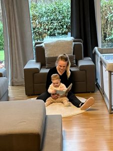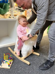 Ich war mit Mama und Papa im Möbelhaus. Da habe ich einen eigenen kleinen Sessel für mich bekommen. Nun kann ich da sitzen und mir alles anschauen.