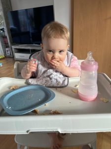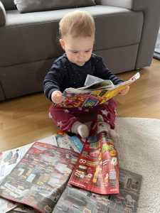 Neuerdings weiß ich wo die Fernbedienung für den Fernseher ist. Wenn ich die Mama bringe darf ich manchmal auch für ein paar Minuten das Sandmännchen oder Kindergartenlieder anhören. Dann klatsche und tanze ich mit den Leuten im Fernsehen. Oft sagt Mama aber auch NEIN. Finde ich dann doof.