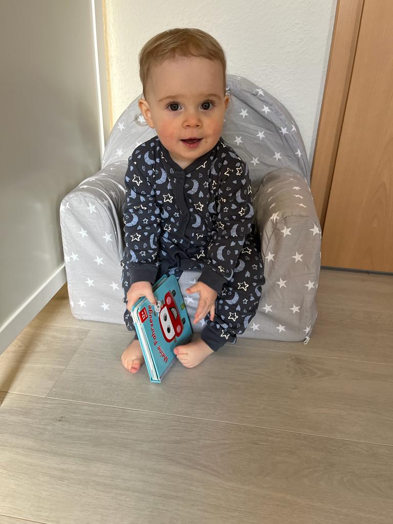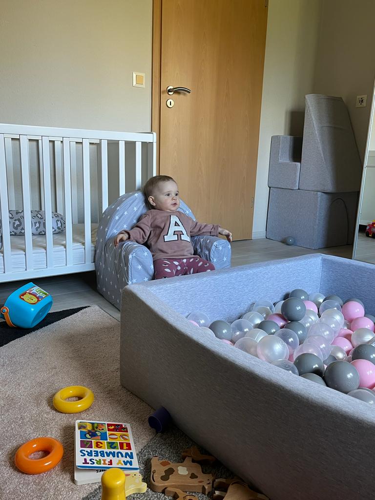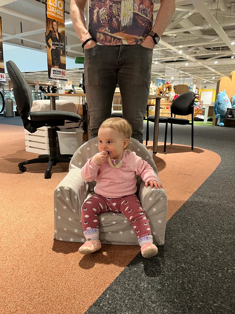 Ich war mit Mama und Papa im Möbelhaus. Da habe ich einen eigenen kleinen Sessel für mich bekommen. Nun kann ich da sitzen und mir alles anschauen.