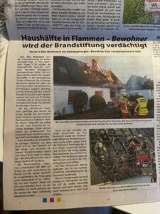 In dem Haus nebenan hat es gebrannt. Da war die Feuerwehr da und hat gelöscht. Wir konnten uns das genau ansehen.