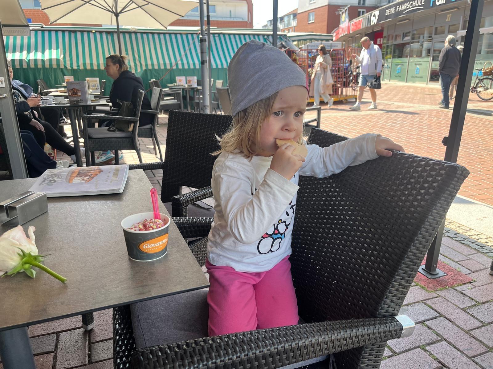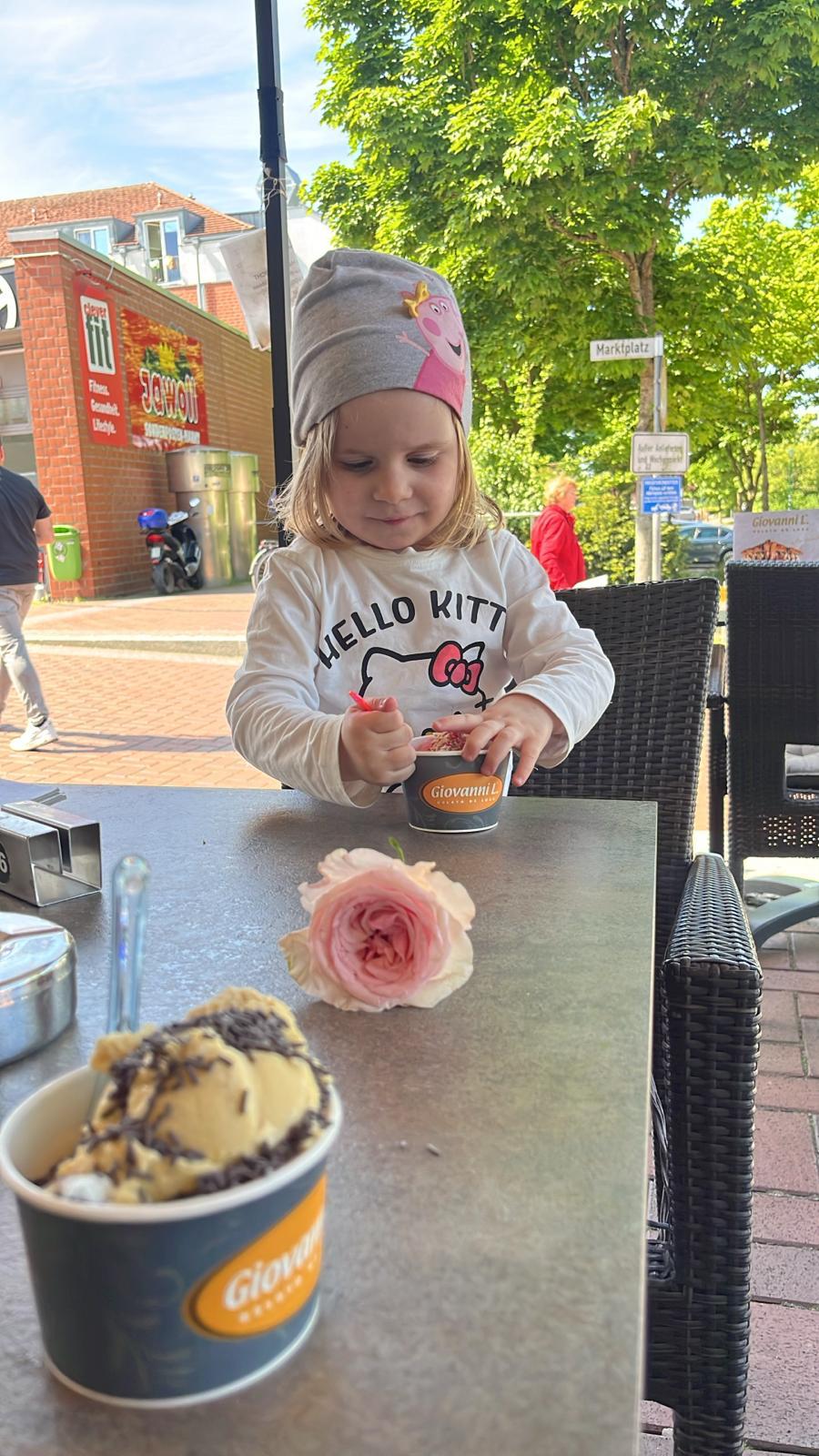 Außerdem hat unsere Erzieherin vom Kindergarten geheiratet. Da waren wir dabei. Findet Ihr mich auf den Bildern? Anschließend war ich mit Papa Eis-Essen. Yummi