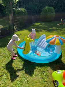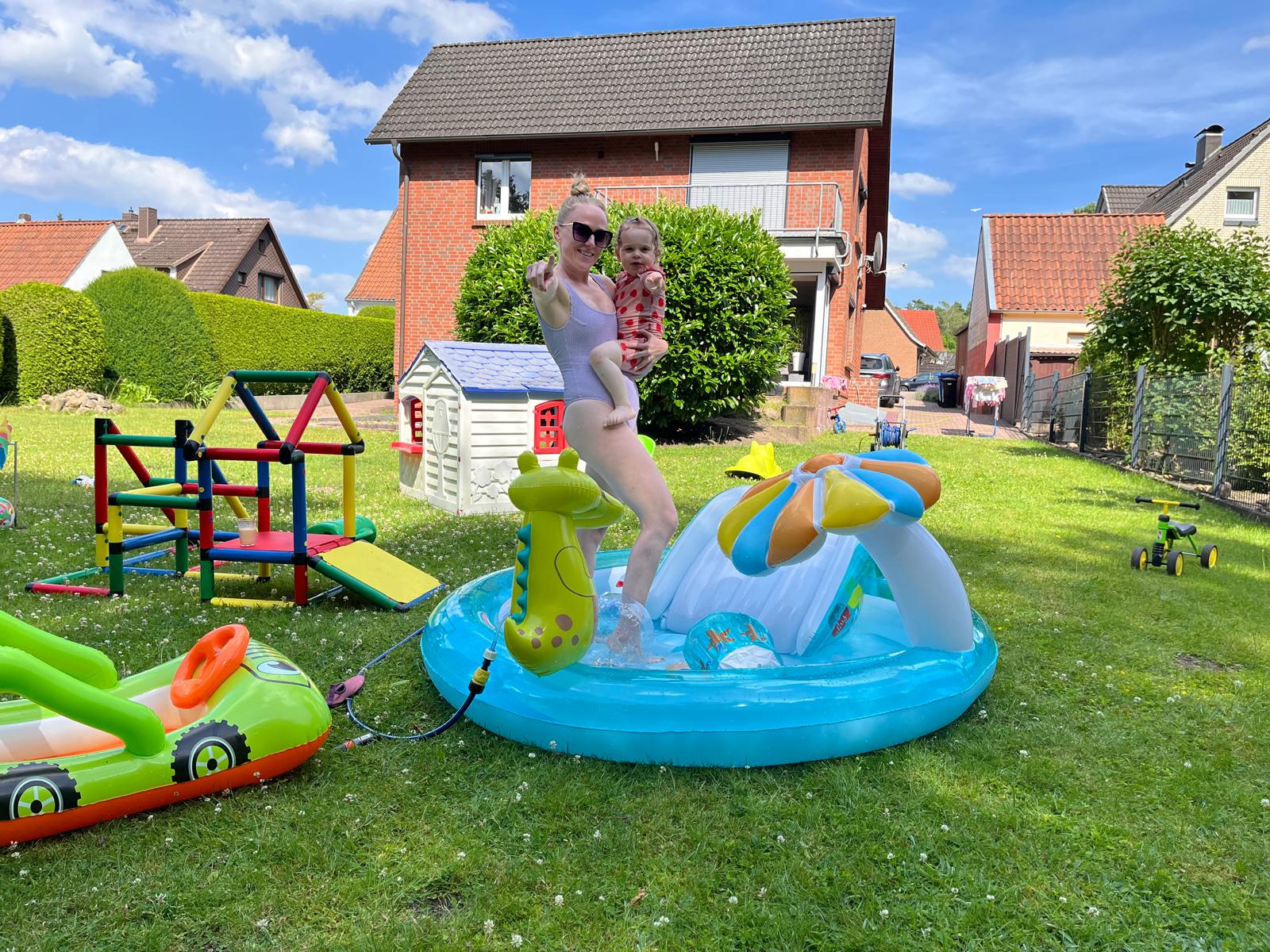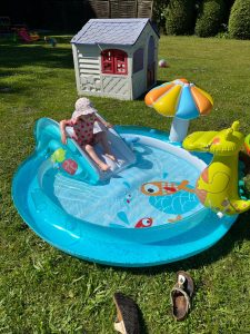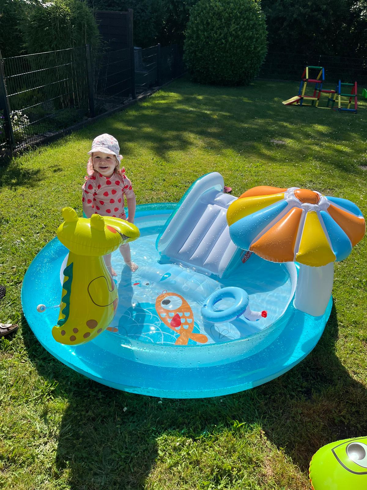 KW26 24. – 30. Juni 2024 Aryana - Von Anfang an Diese Woche war schönes Wetter. Da konnte ich im Garten in meinem Swimming-Pool baden. Das hat vielleicht Spaß gemacht! Und dann kam ein Paket von Ulrike….