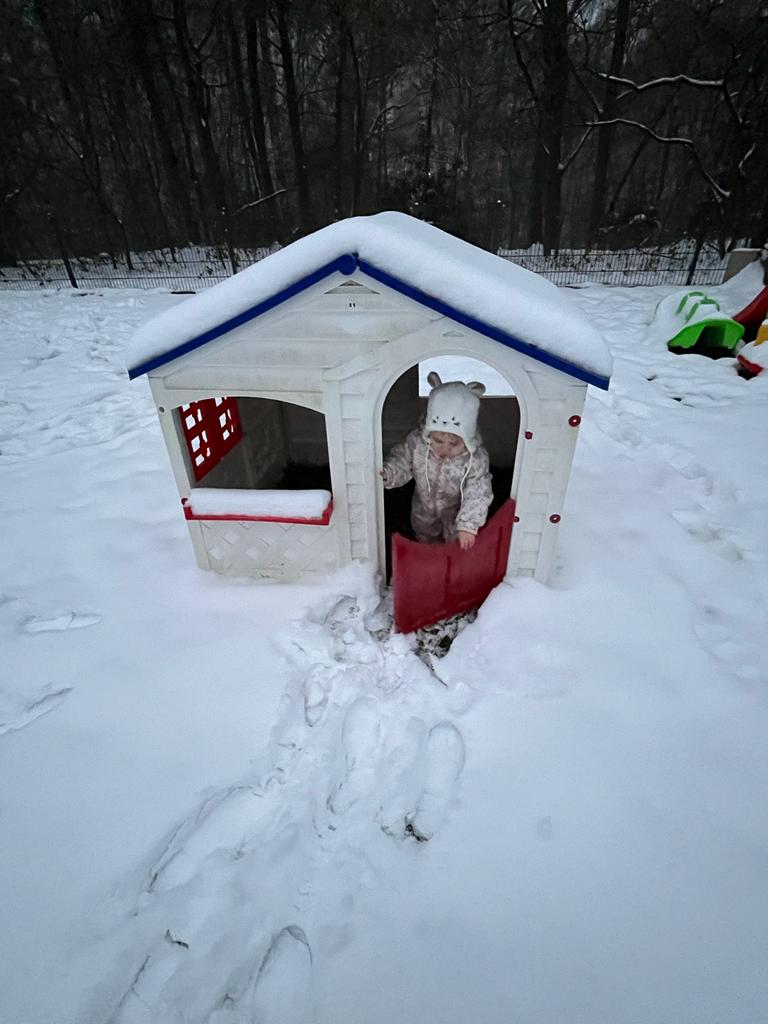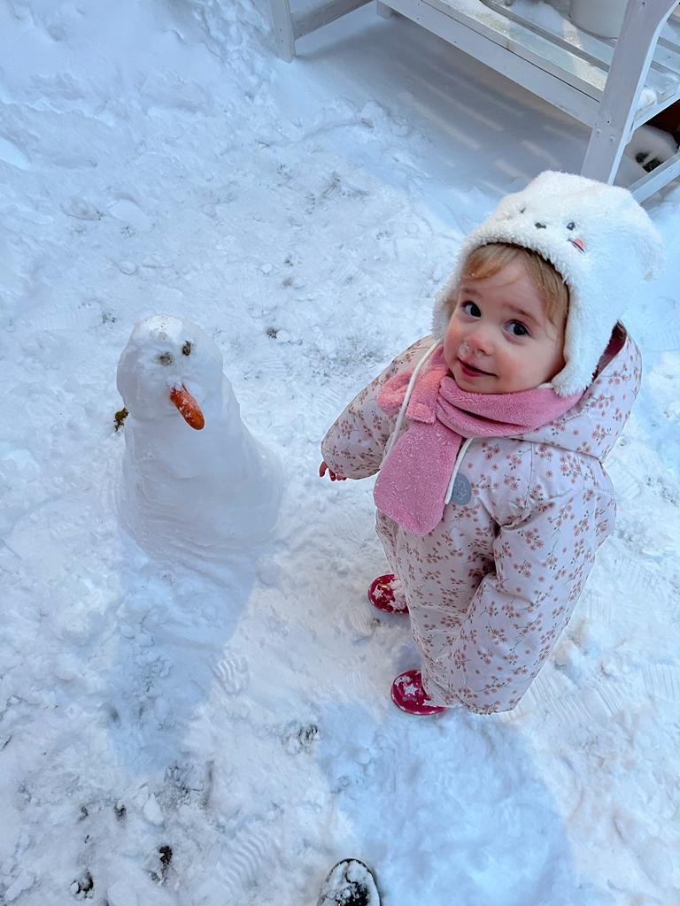 Immer noch Schnee. Wir haben einen Schneemann gebaut. Der sah aber lustig aus. Loki und ich haben ganz viel Spaß. Alles WEISS.