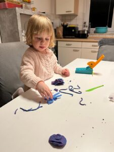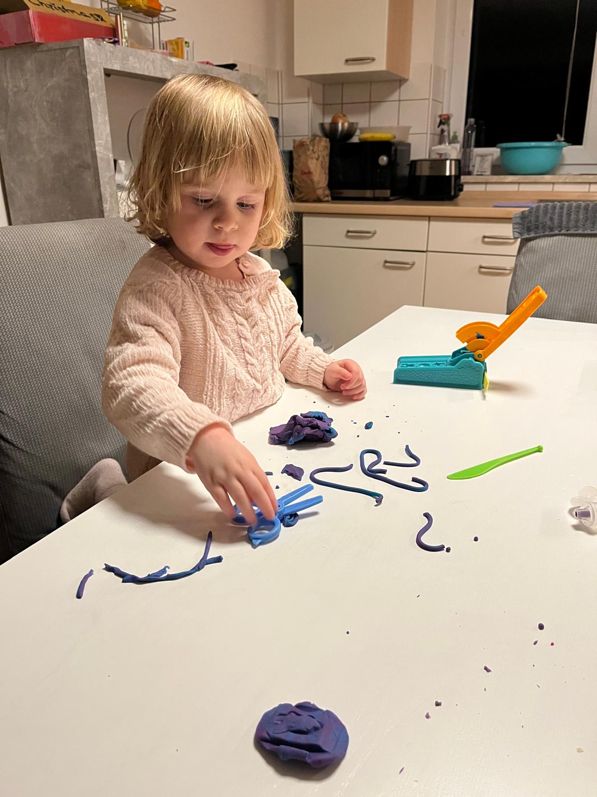 Ich habe einen riesigen Tannenbaum gesen, war wieder beim Kinderturnen und hab mit der Knete Würmer gebastelt.