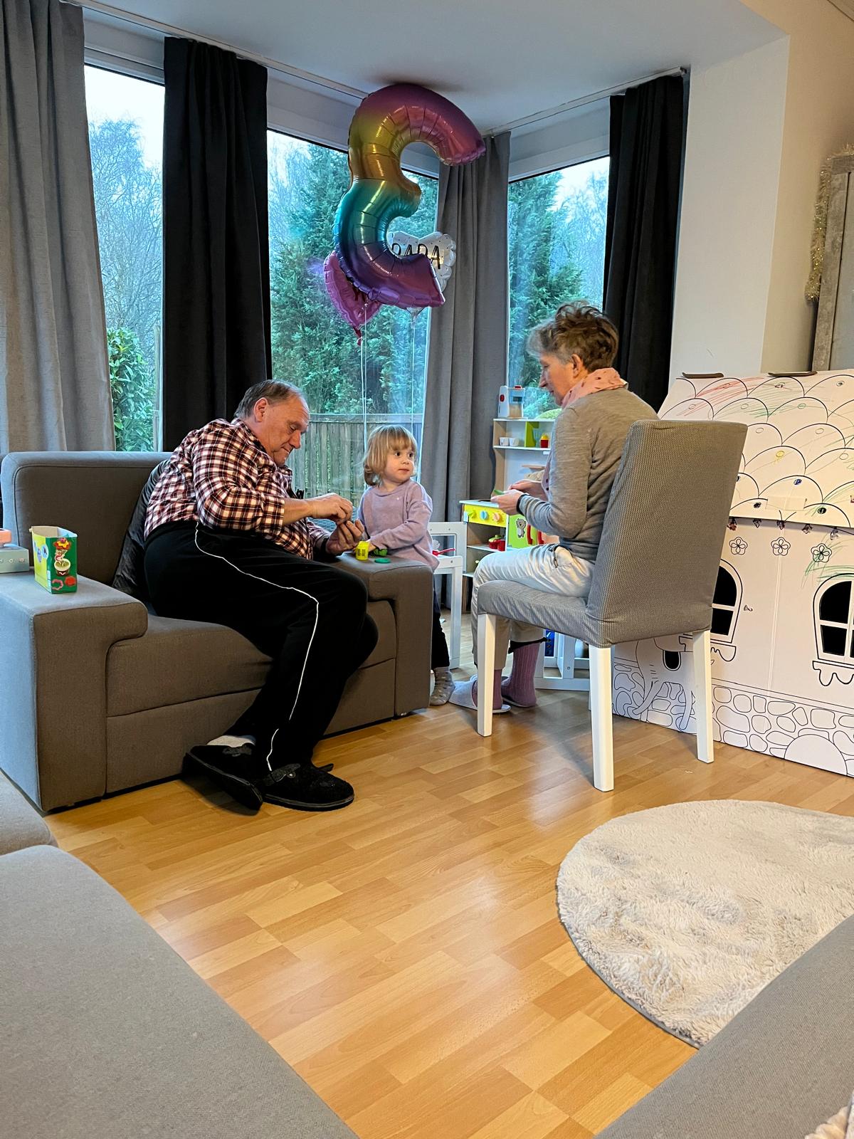 Zum Geburtstag waren mehrere Kinder da und dann waren Opa und Oma an den Weihnachtstagen da.